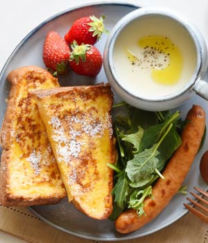 朝はお子さま連れで安心ランチ、午後はカフェタイムでひと休み、